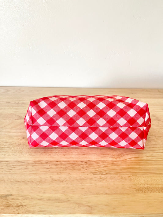 Red Gingham Zipper Pouch: Long Cotton Cosmetic Bag