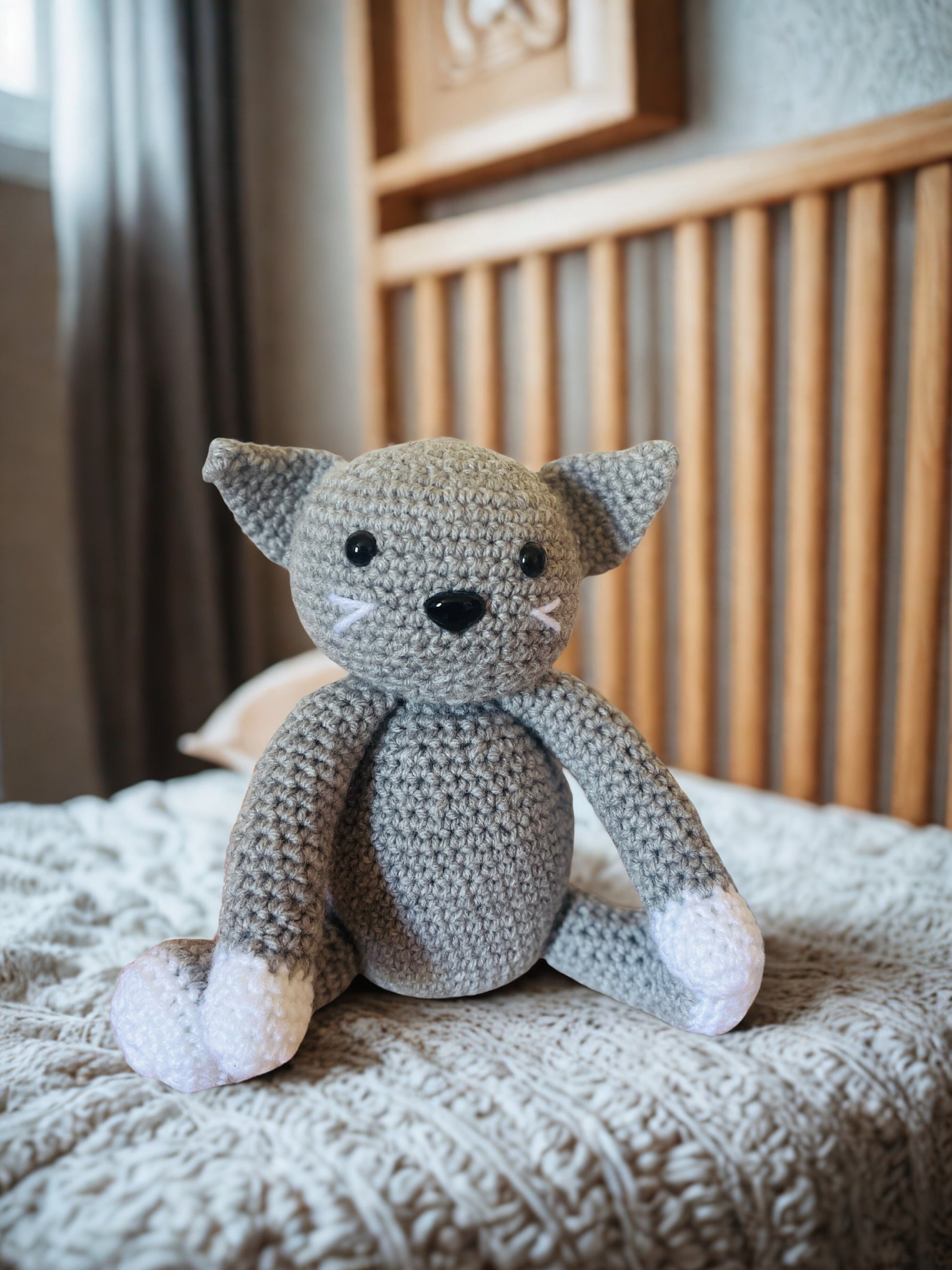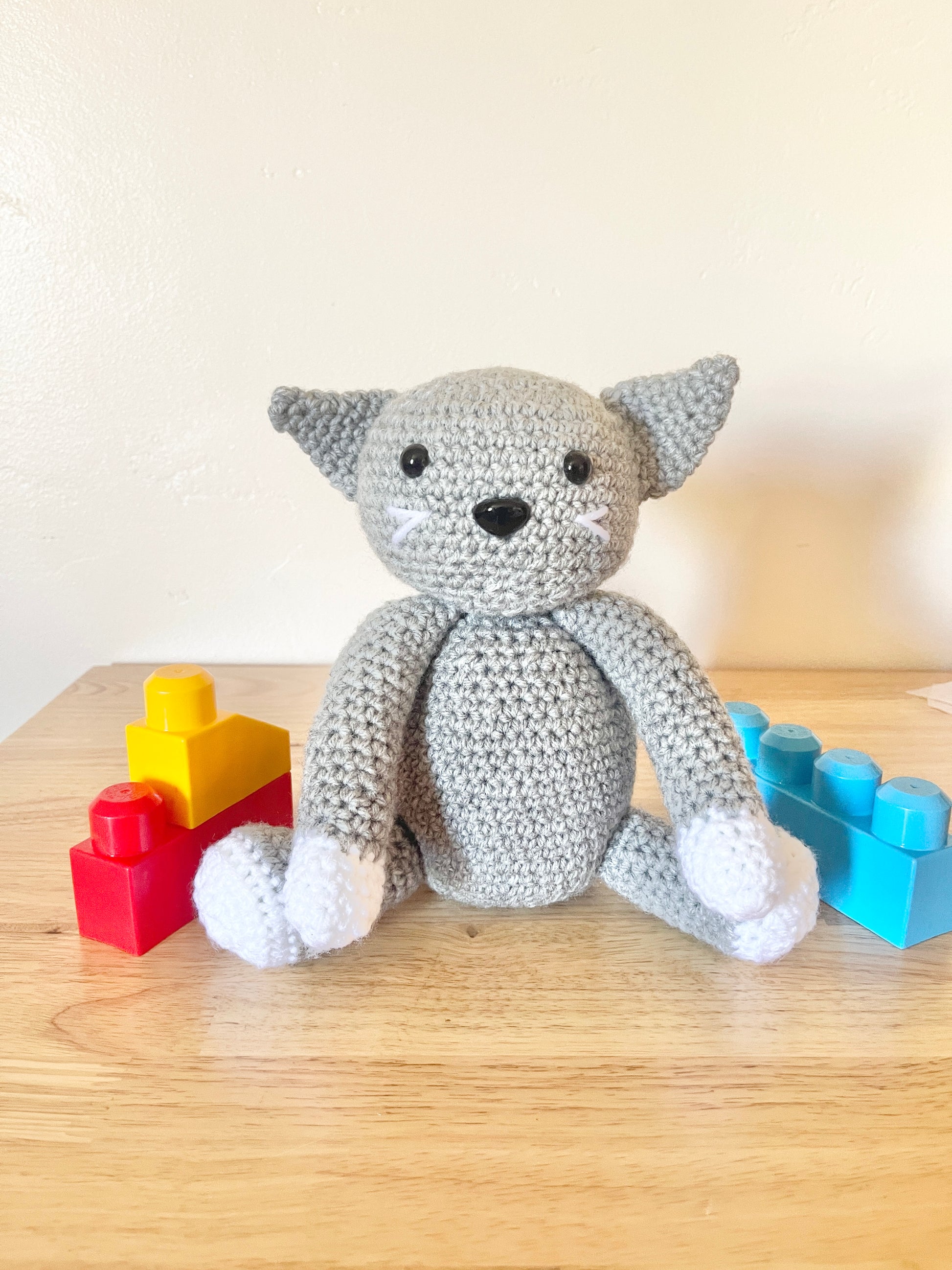 100% Acrylic premium yarn, premium poly-fil for his stuffing, it has plastic safety eyes