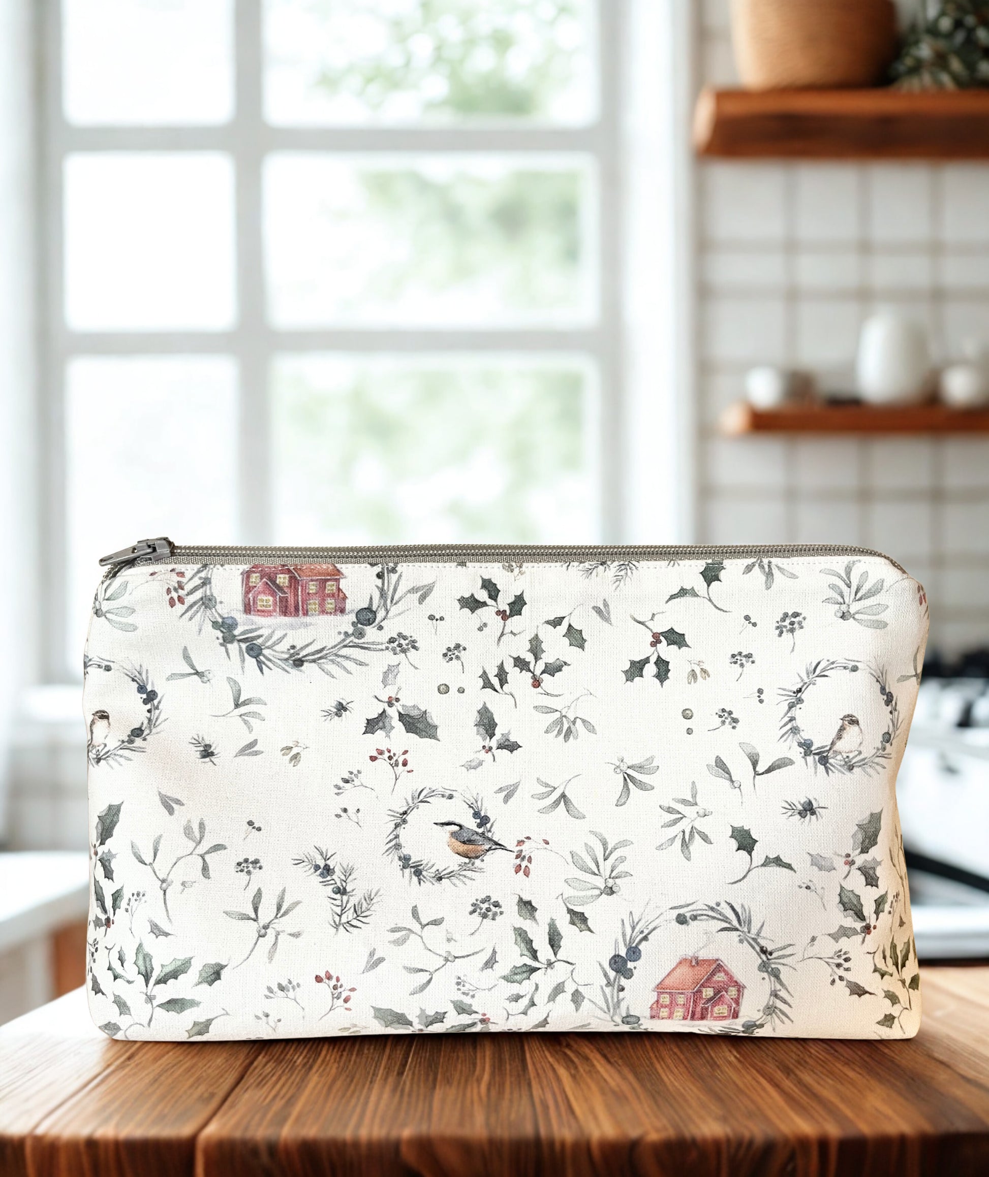 Winter Romance Zipper Pouch: 100% Cotton, Cream Lining
