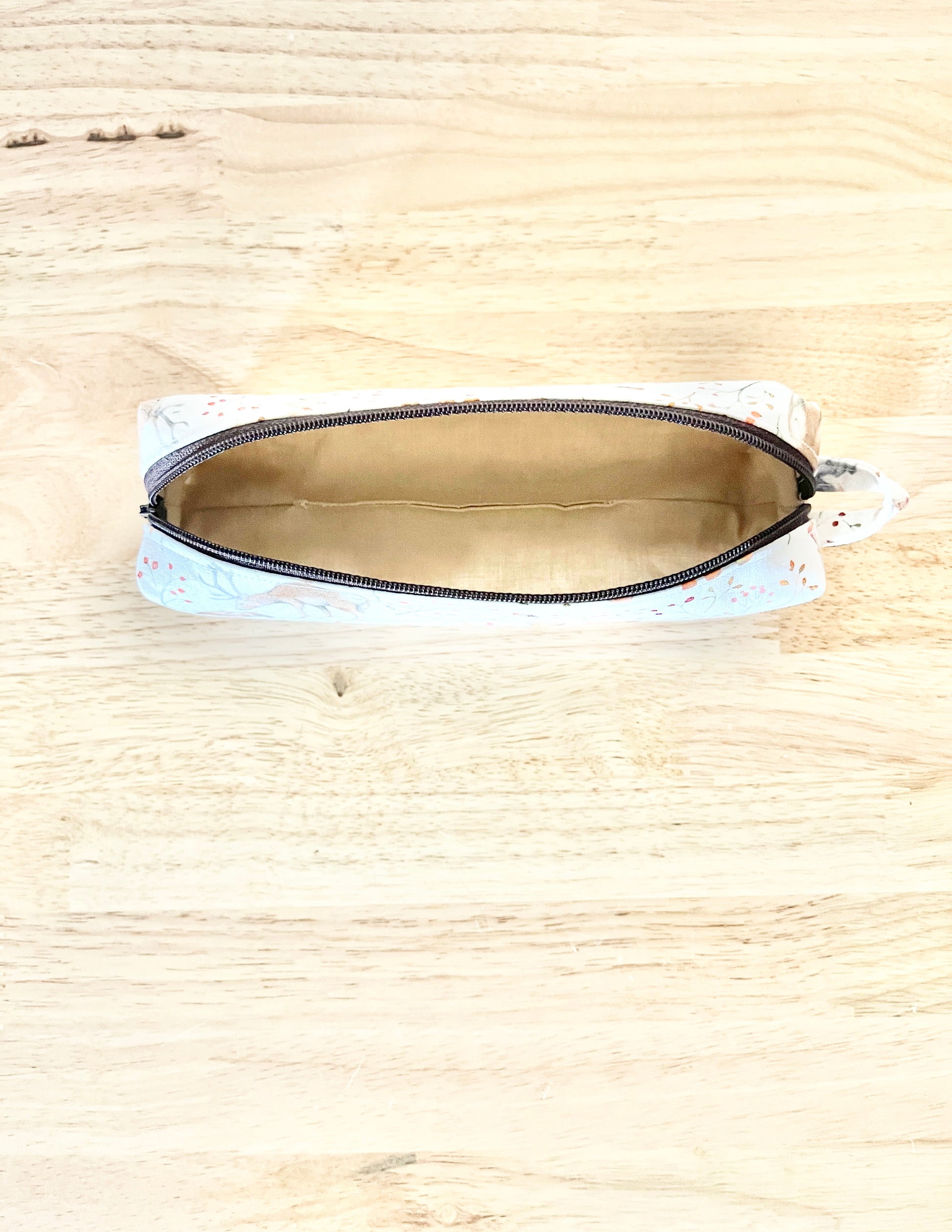 This handmade pencil pouch size 7' long, 2' wide & 2 1/2' tall, the color of the