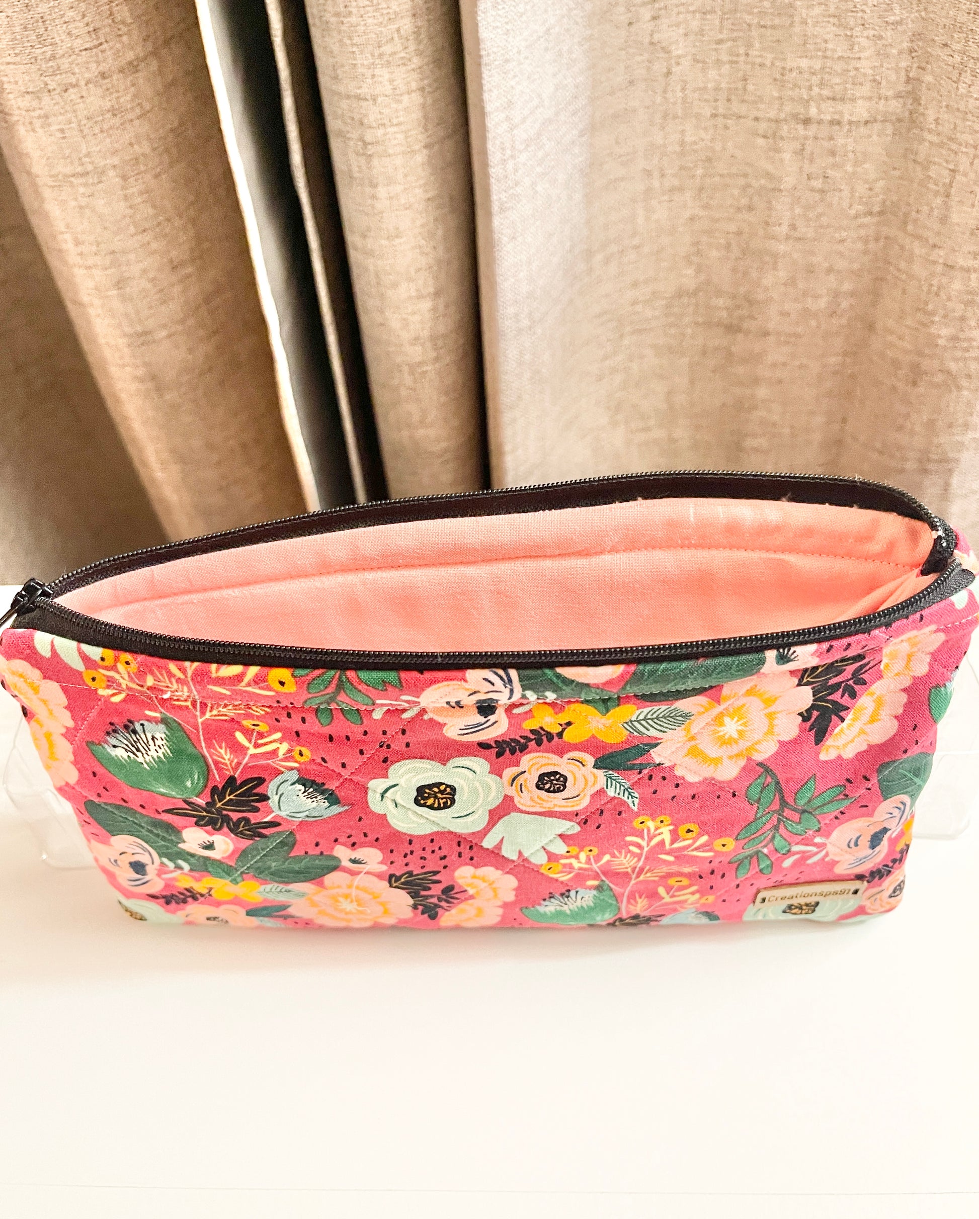 Quilted Zipper Pouch: Floral Cotton Cosmetic Bag