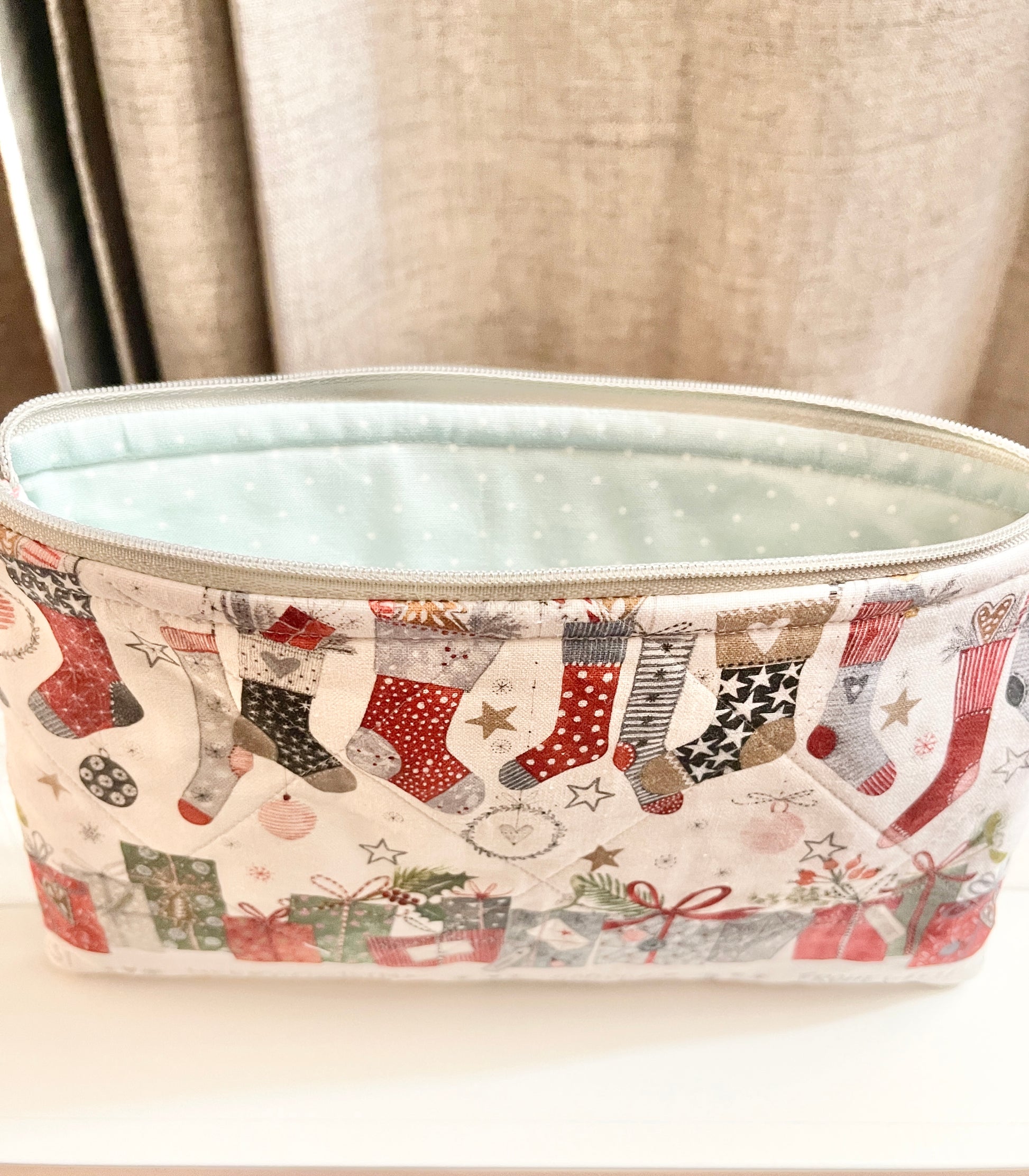 Stocking & Presents Quilted Zipper Pouch: 100% Cotton