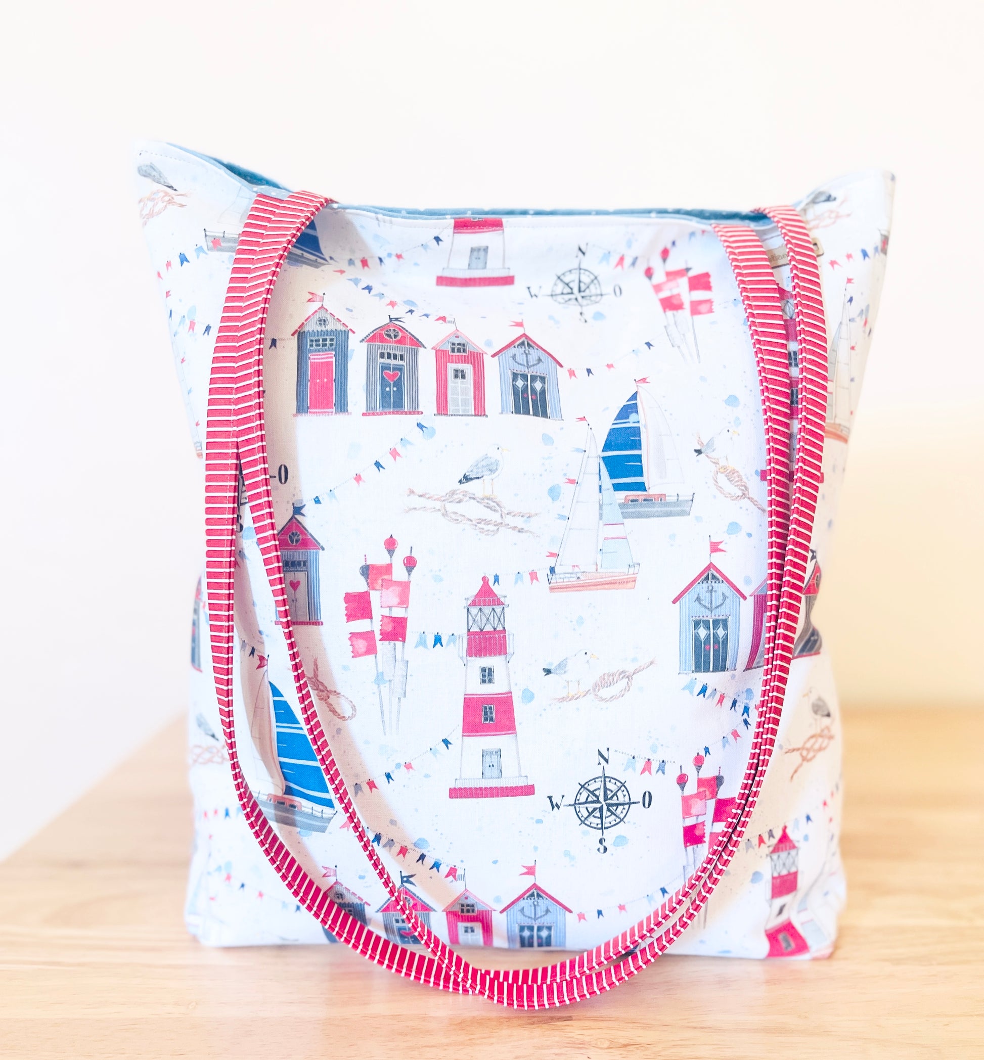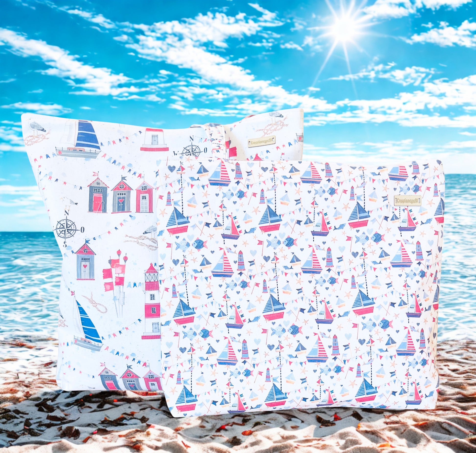 Cotton Tote Bags: Nautical Sailboat ,Lighthouse print