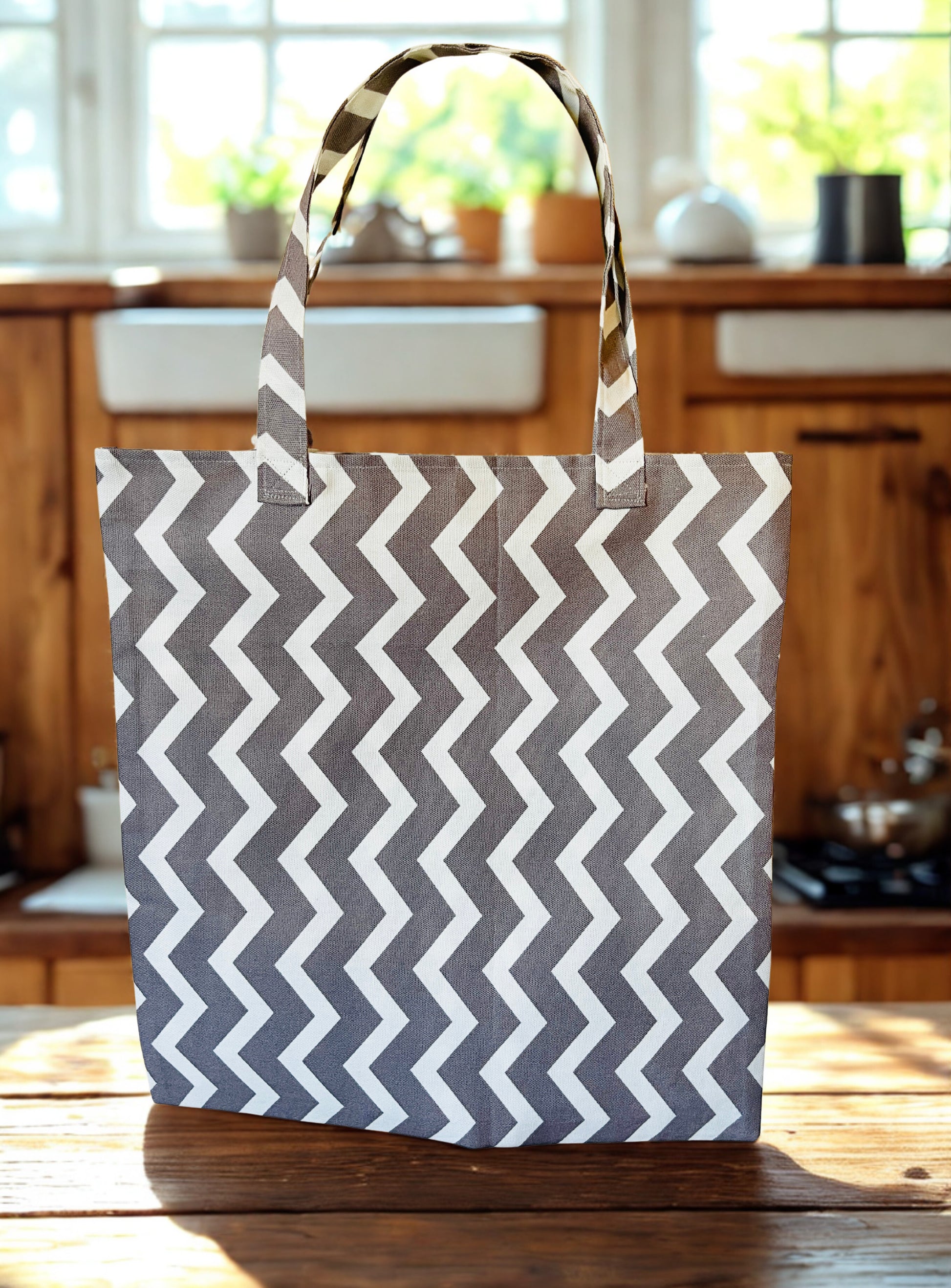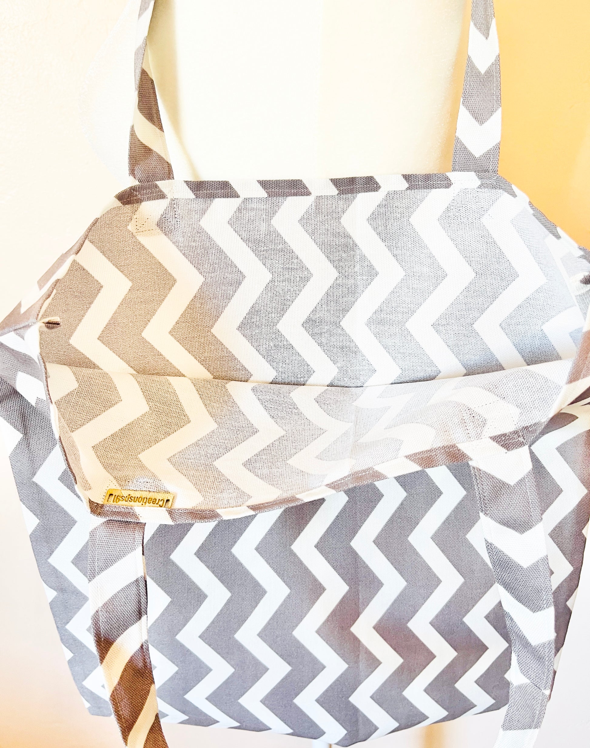 Chevron Print Tote Bag: 100%Cotton Canvas