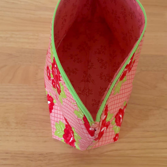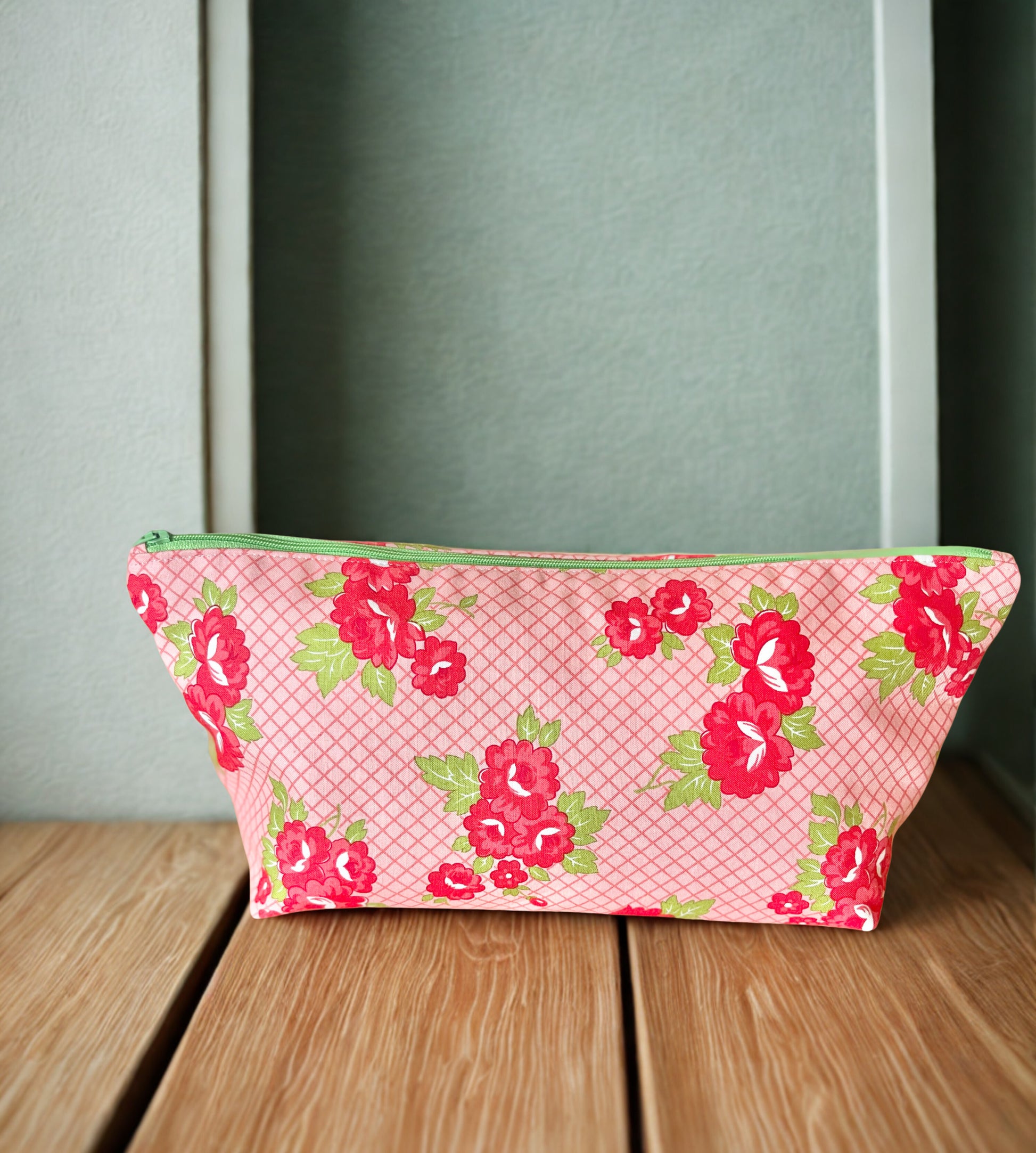 Floral Cotton Zipper Pouch: Lime Green Accent