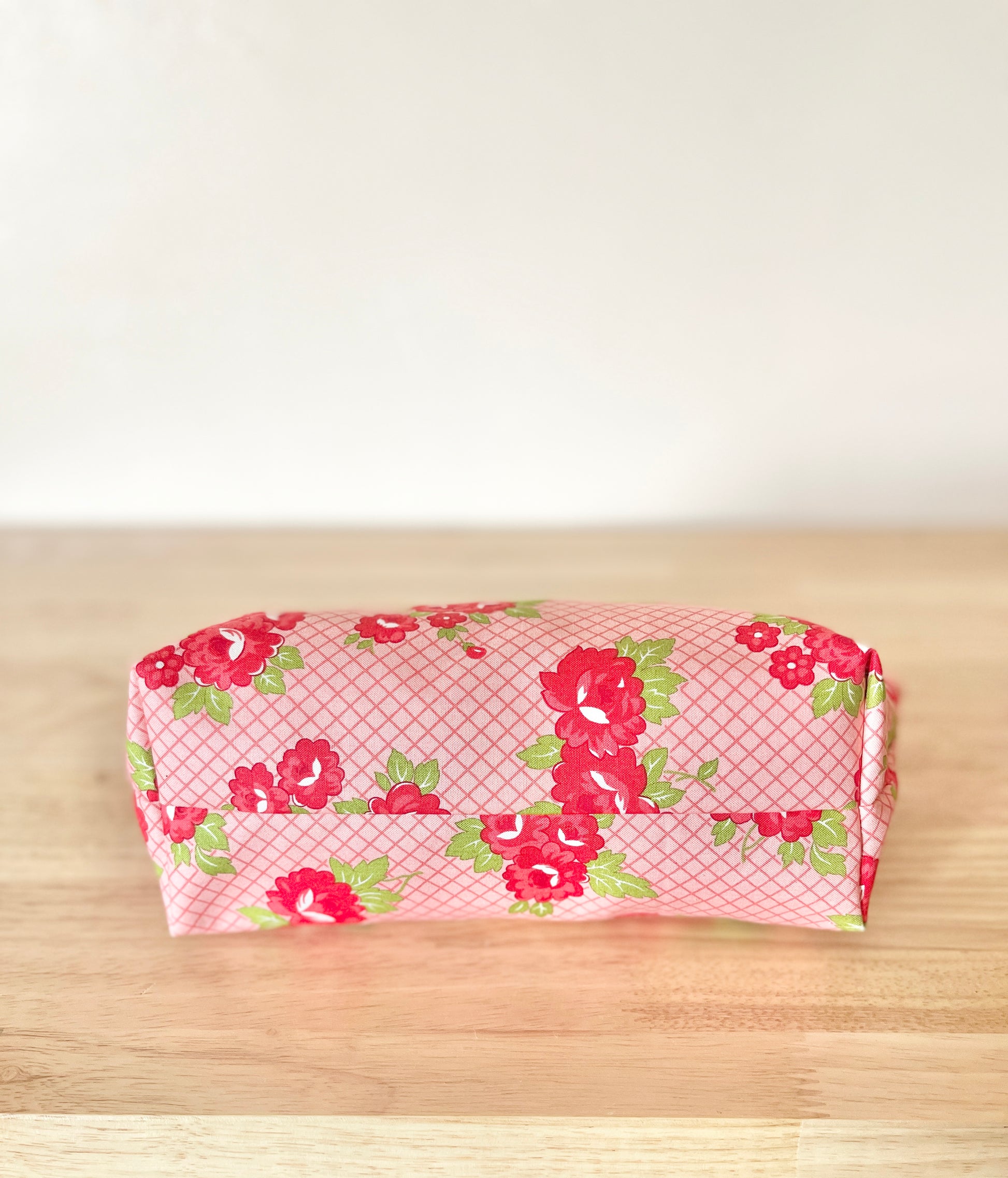 motif, the motif wraps around the entire zipper pouch, it is fully line, it has 4' box
