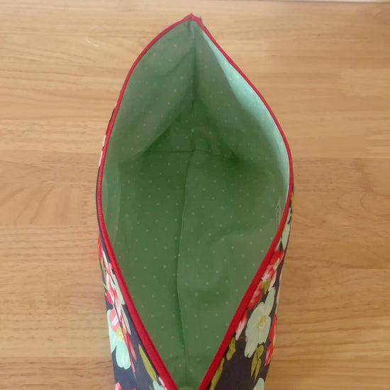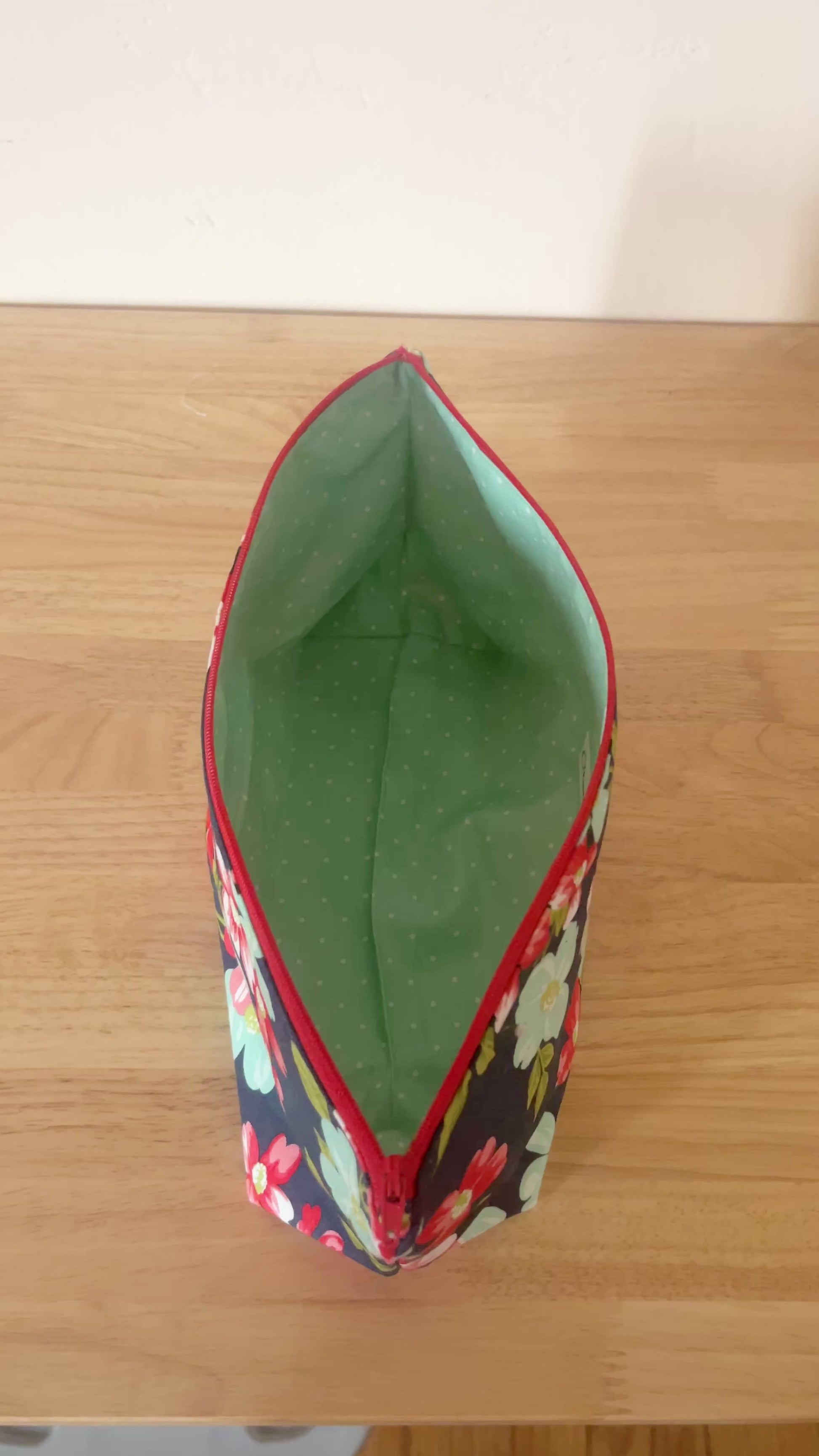 bottom, the color of the zipper is red which are the colors of some of the flowers in the