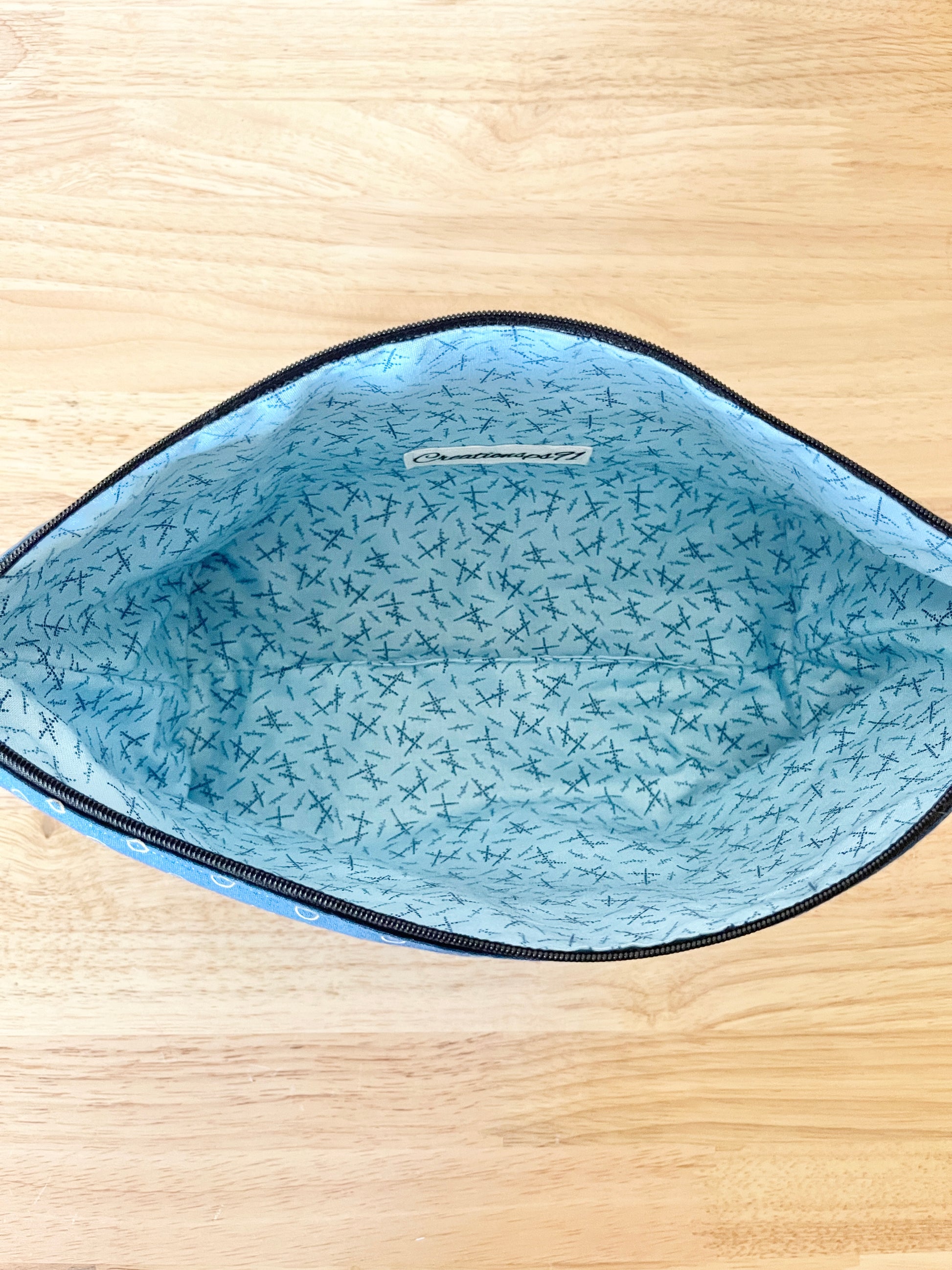 pouch, it is fully line, it has 4' box bottom. All fabric are 100% cotton, that are