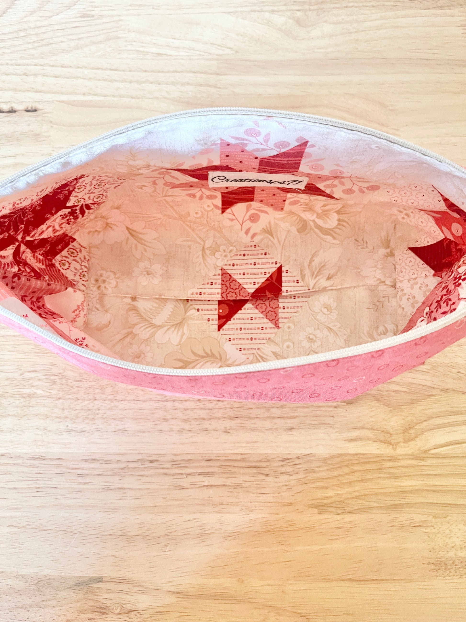 pouch, it is fully line, it has 4' box bottom. All fabric are 100% cotton, that are washable