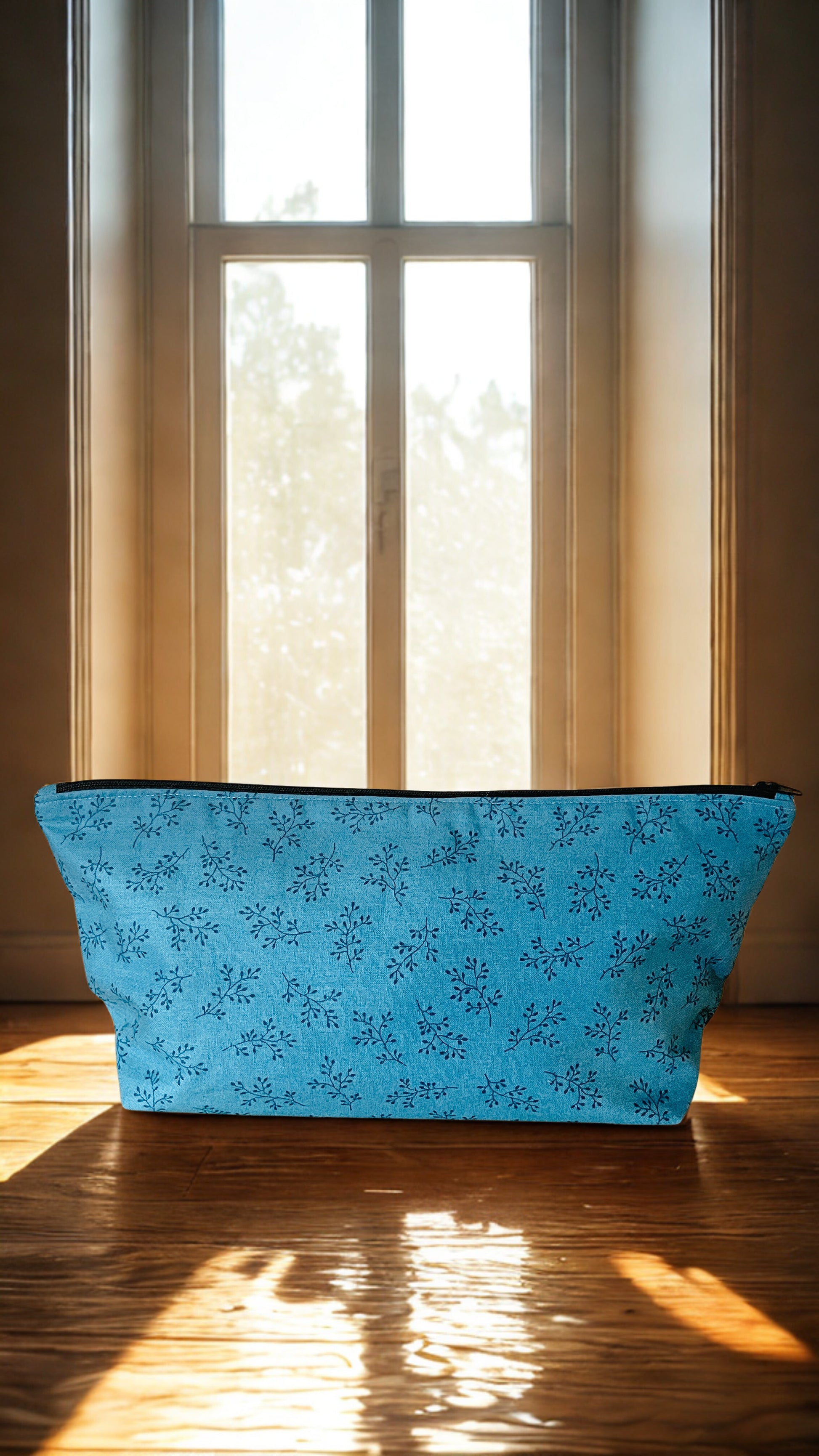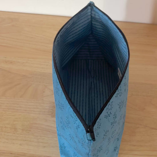 Floral Cotton Zipper Pouch: Long Travel Cosmetic Bag
