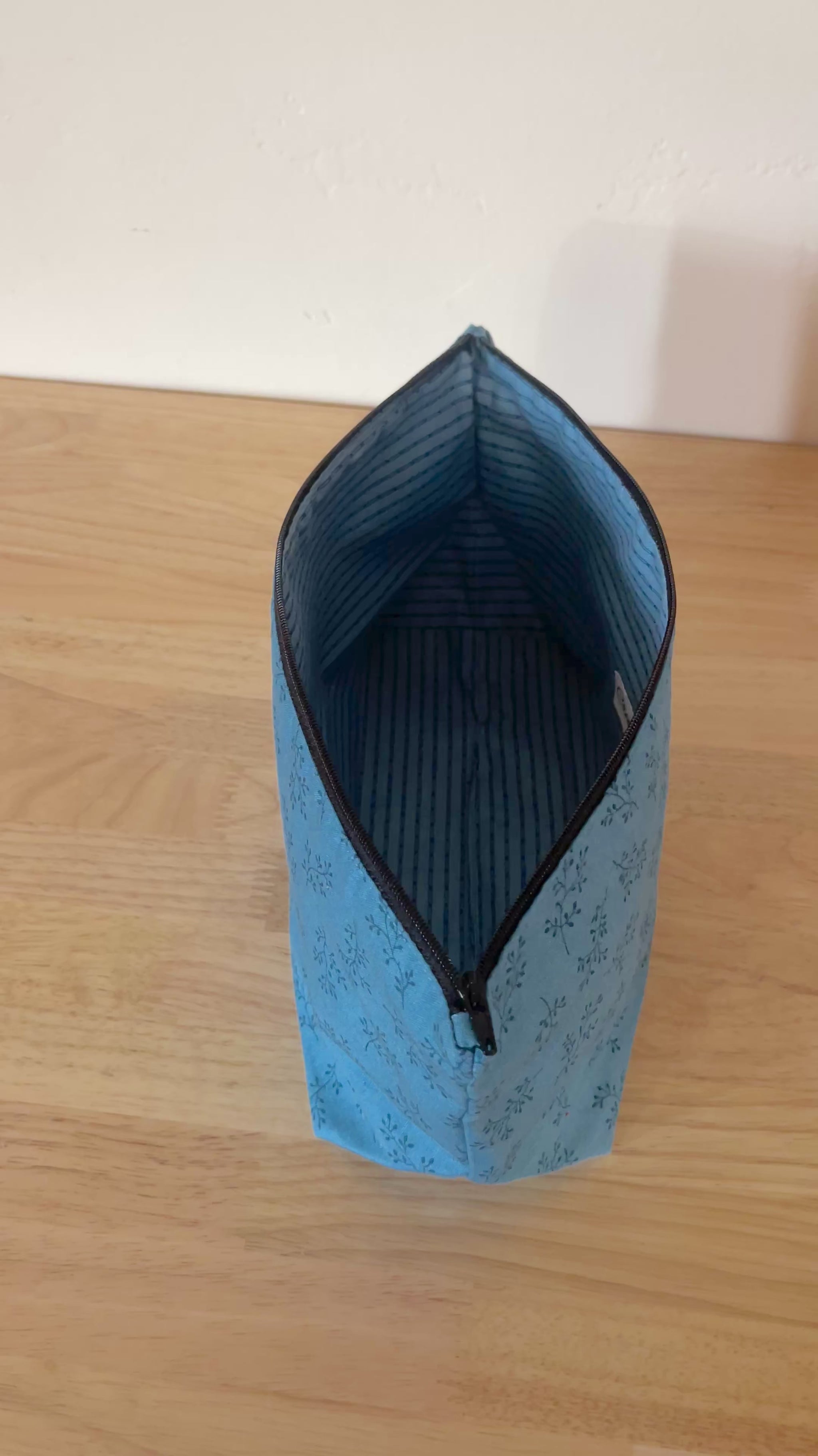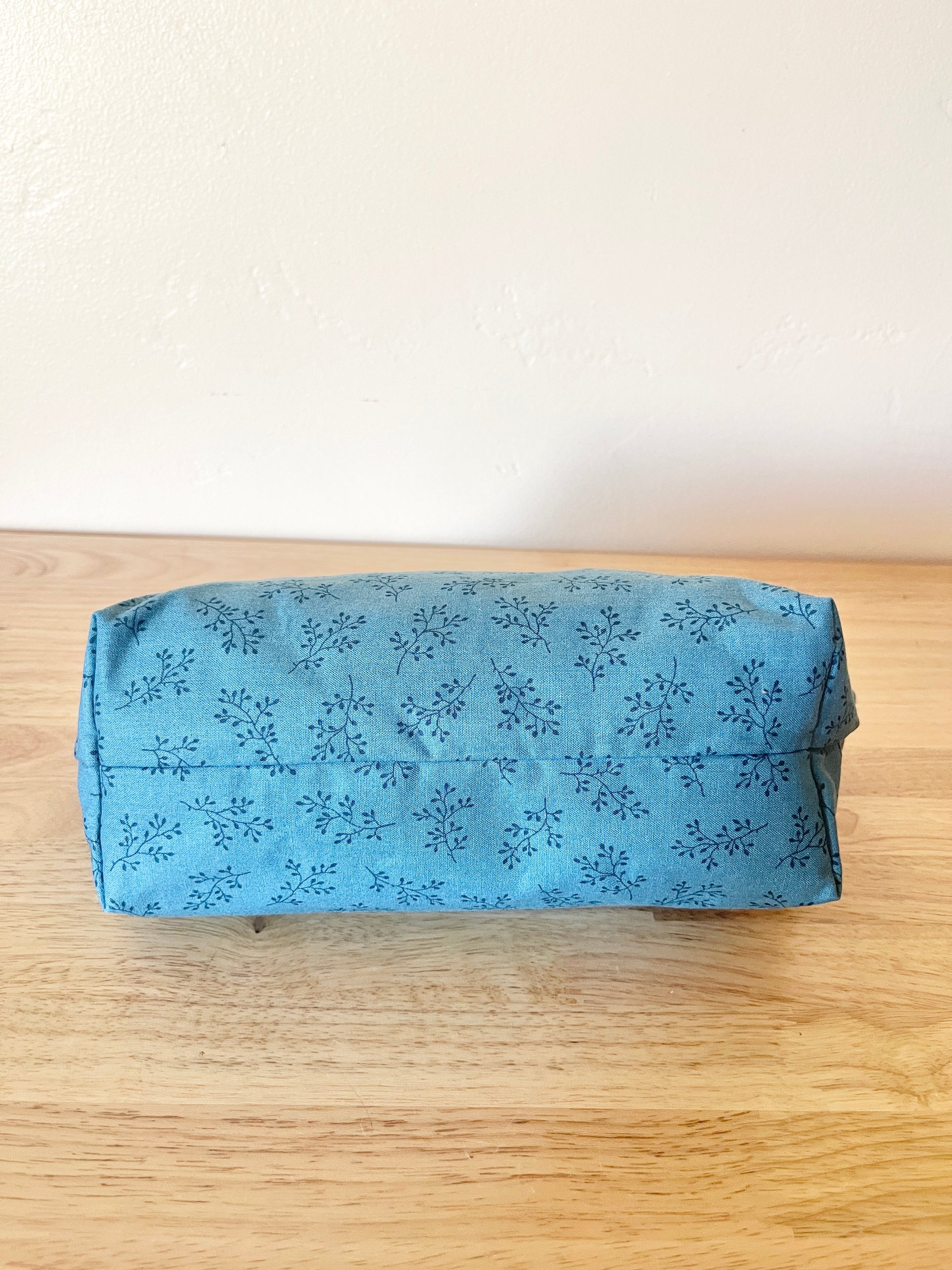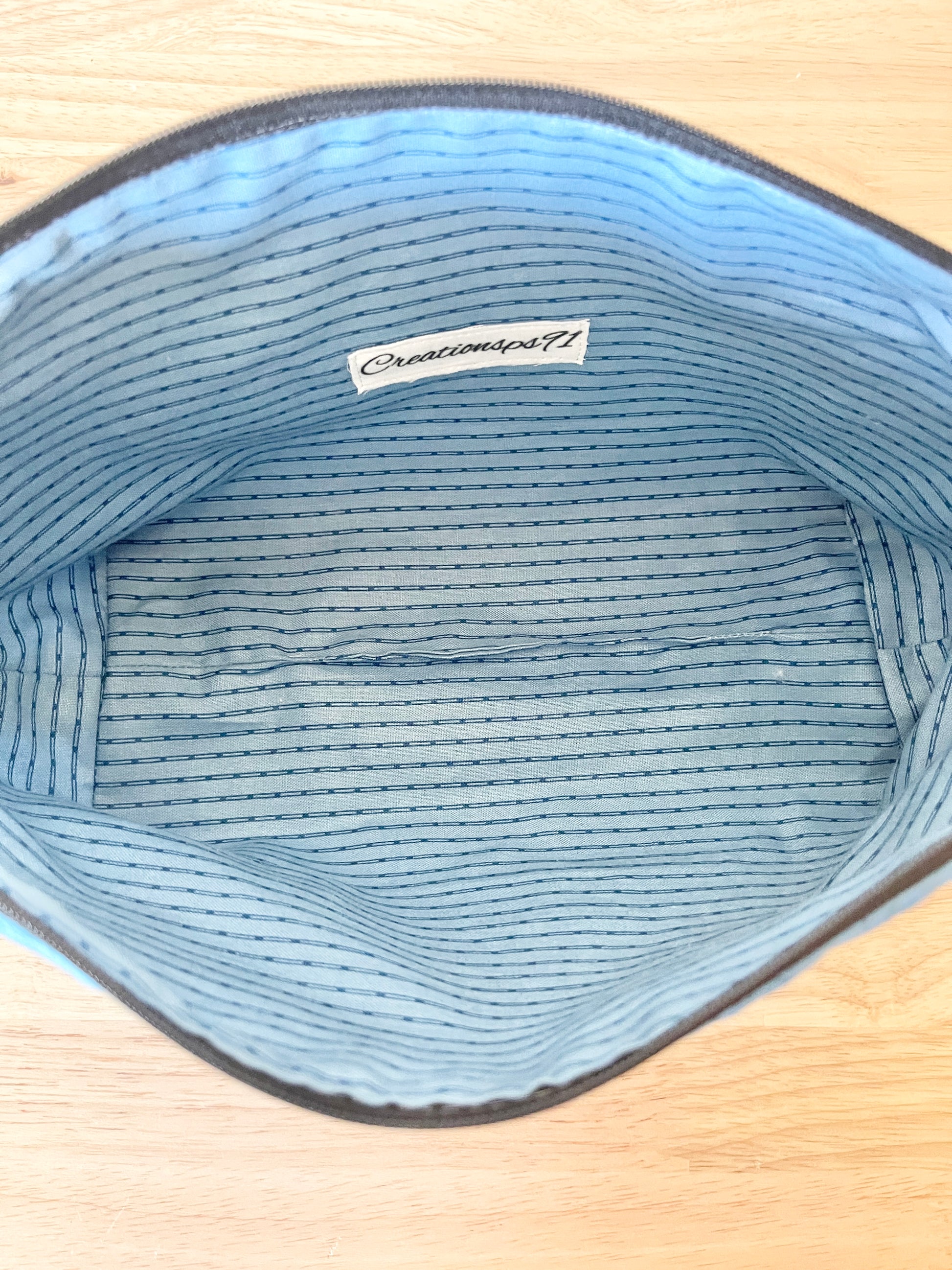 This handmade pouch measurements are 13 1/2' wide, 6 1/2' tall, and 9 1/2' long
