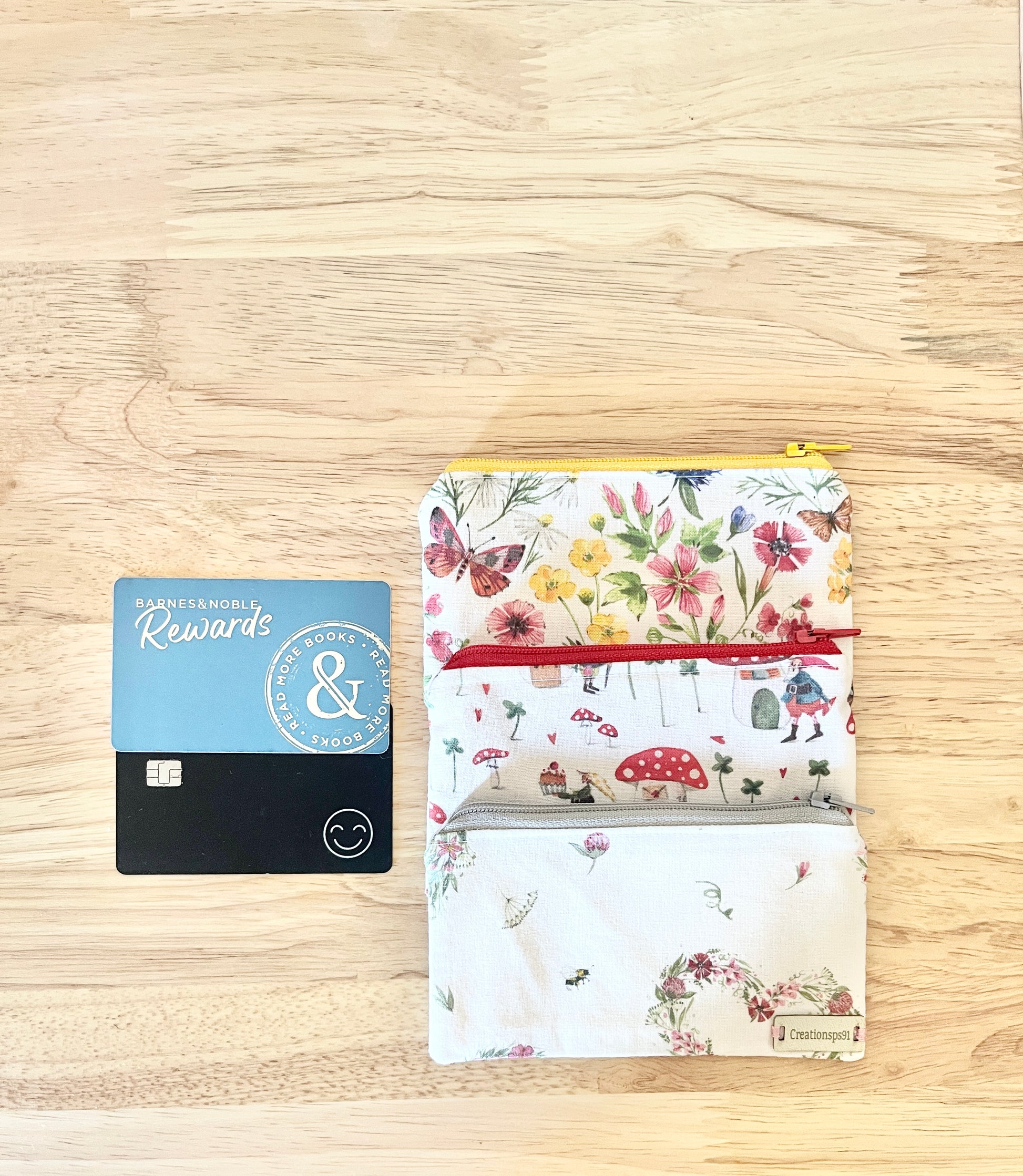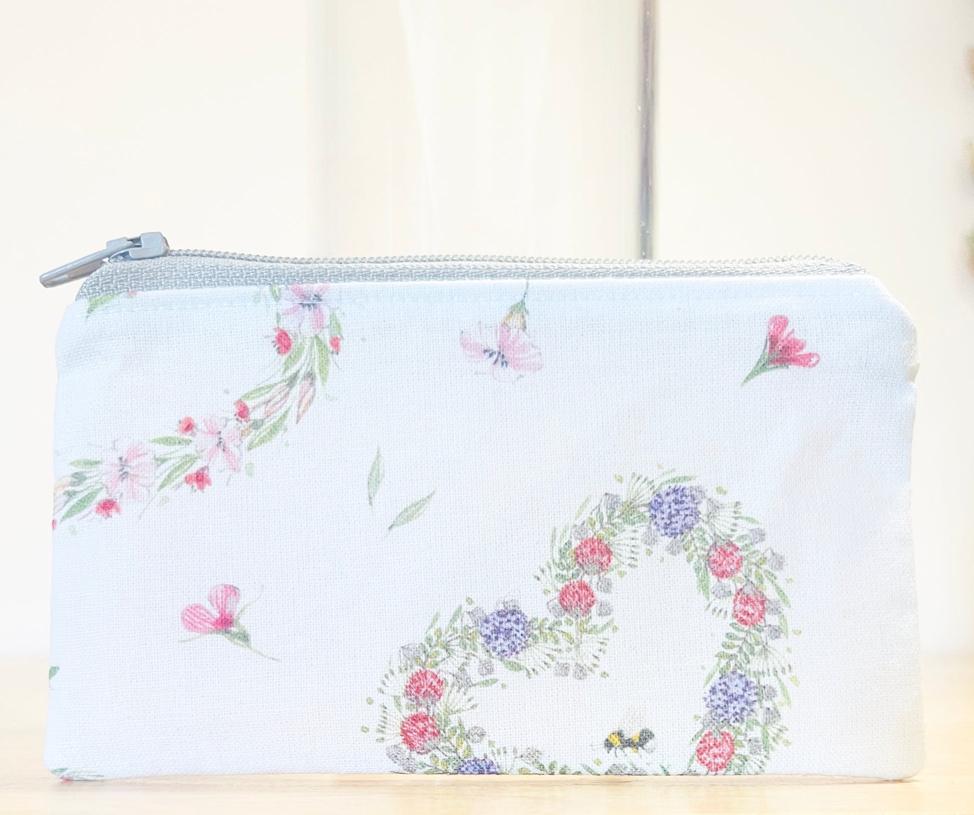Cotton Mini Zipper Pouches: Floral Garden & Hearts